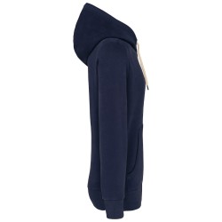 80% Coton / 20% Polyester (Ash Heather : 79% coton / 20% polyester / 1% viscose). Molleton gratté. Toucher peau de pêche et aspect "Vintage". Capuche doublée. Cordon capuche rond et contrasté. Bande de propreté fantaisie à l'encolure. Poches kangourou. Finition bord-côte bas de manche et bas de vêtement. Ce produit a subi un traitement spécial et présente un aspect volontairement vieilli. Ce procédé de fabrication implique des variations de couleurs d'un produit à l'autre et rend chaque pièce unique. Pas d'étiquette de marque au col, uniquement une indication de taille pour faciliter la personnalisation.