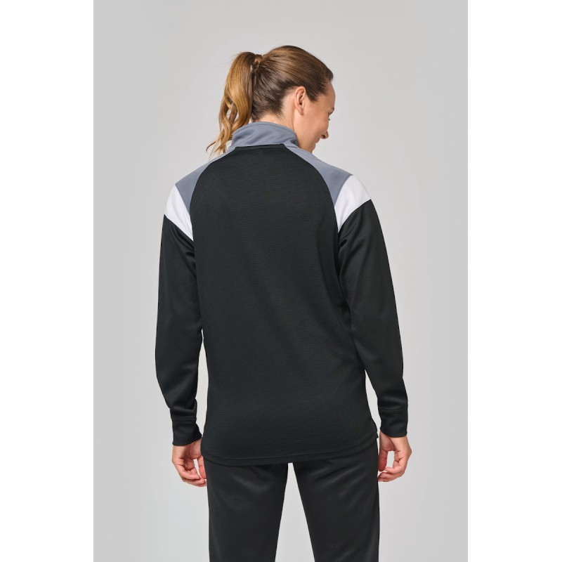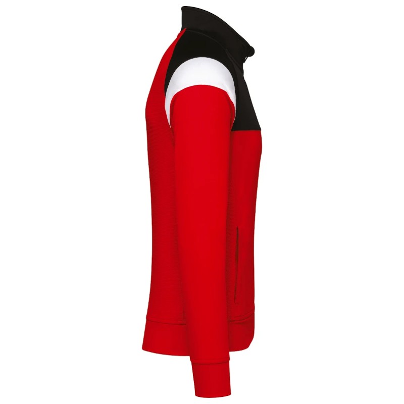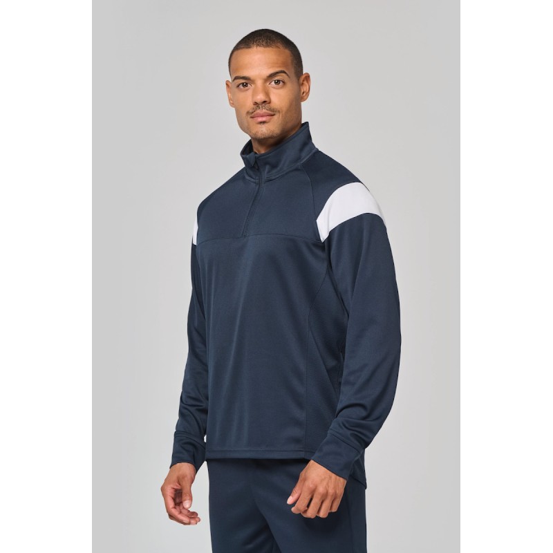 100% polyester interlock mat. Coupe droite. Col avec zip inversé en nylon ton sur ton. Manches raglan avec inserts contrastés épaule. Découpe poitrine et épaule contrastée. Inserts en tissu texturé sur les côtés et dans le dos. Ourlet au bas du vêtement et dos rallongé. Fentes latérales pour plus d'aisance. Couvre zip en haut du col pour plus de confort. Etiquette de marque détachable pour faciliter la personnalisation.