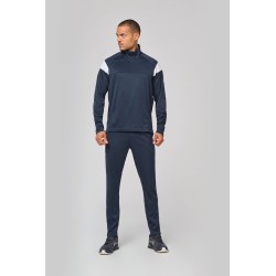 100% polyester interlock mat. Coupe droite. Col avec zip inversé en nylon ton sur ton. Manches raglan avec inserts contrastés épaule. Découpe poitrine et épaule contrastée. Inserts en tissu texturé sur les côtés et dans le dos. Ourlet au bas du vêtement et dos rallongé. Fentes latérales pour plus d'aisance. Couvre zip en haut du col pour plus de confort. Etiquette de marque détachable pour faciliter la personnalisation.