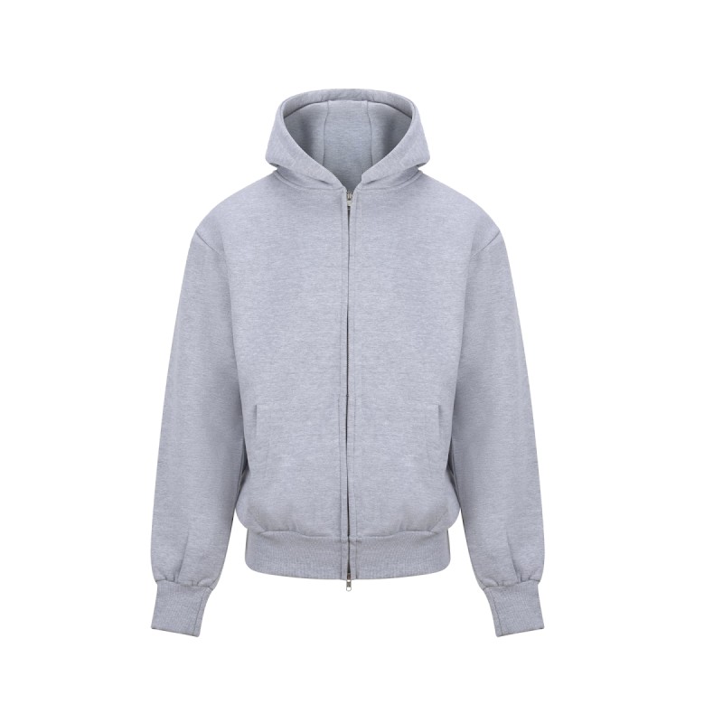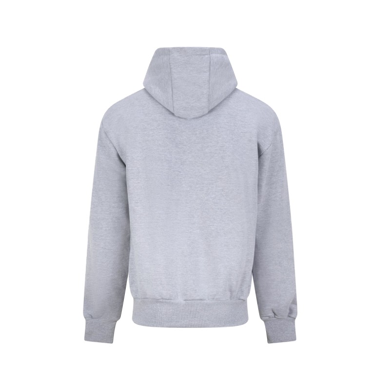 Couple ample. Capuche à trois panneaux en double tissu, sans cordon de serrage. Intérieur brossé.