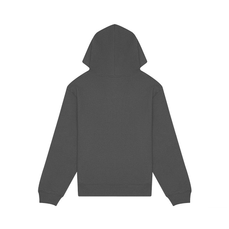 Capuche doublée, sans cordon de serrage. Intérieur gratté. 1 poche kangourou.