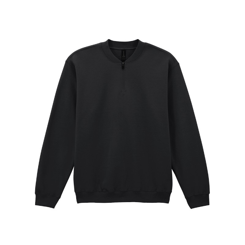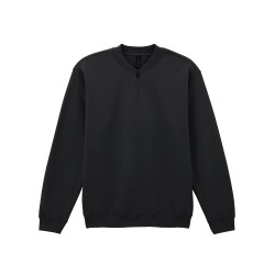 80% Coton Ring Spun, 20% Polyester. Côtes 1x1 avec élasthanne, col Varsity, poignets et bande inférieure pour une meilleure élasticité et une meilleure récupération. Fermeture à glissière à enroulement inversé de couleur assortie.