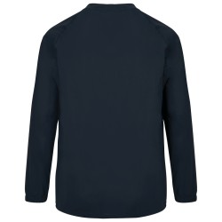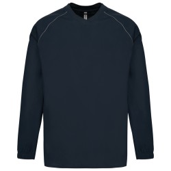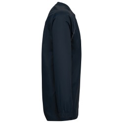 100% polyamide oxford. Enduction PU. Tissu imperméable 1500mm. Coutures thermosoudées aux emmanchures. Manches raglan. Encolure en V en bord-côte 1x1. Œillets d'aération dessous de bras. Passepoil contrasté aux emmanchures. Bas de manches élastiqués. Cordon de serrage avec stoppeur fixé à l'intérieur du bas du vêtement. Etiquette de marque détachable.
