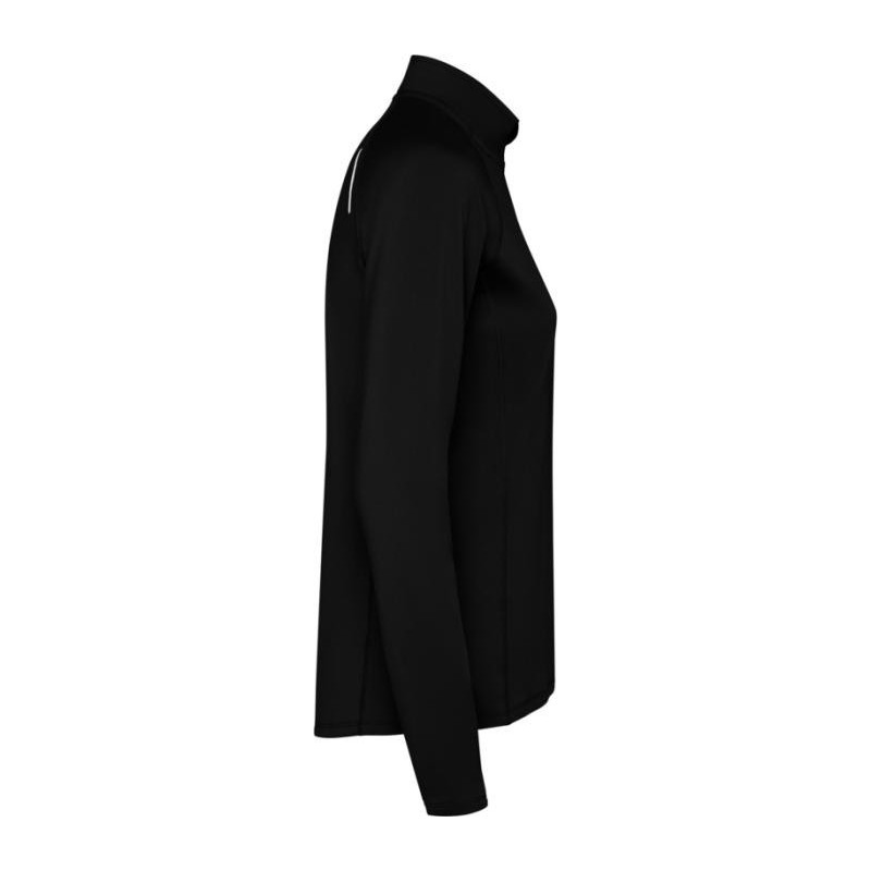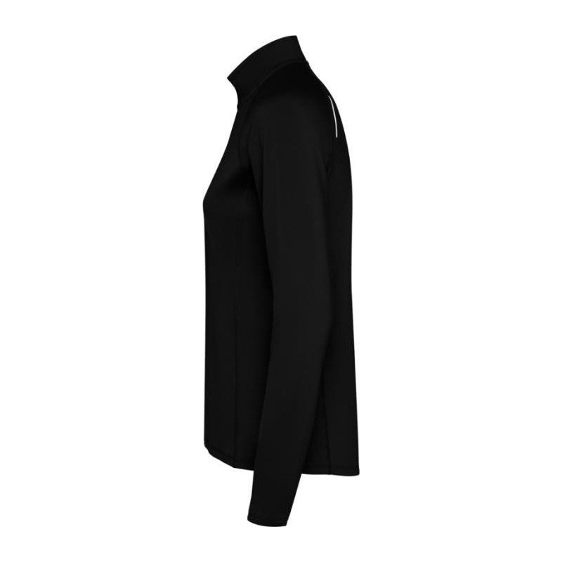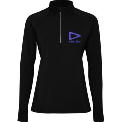 Sweatshirt technique raglan à manches longues pour femme. Coupe ajustée. Col avec demi-zip et détails réfléchissants. Surpiqûres renforcées. Poignets avec ouvertures pour le pouce. Détails réfléchissants au dos. L’ourlet du dos est légèrement plus long que celui du devant. Tissu intérieur chaud et brossé.