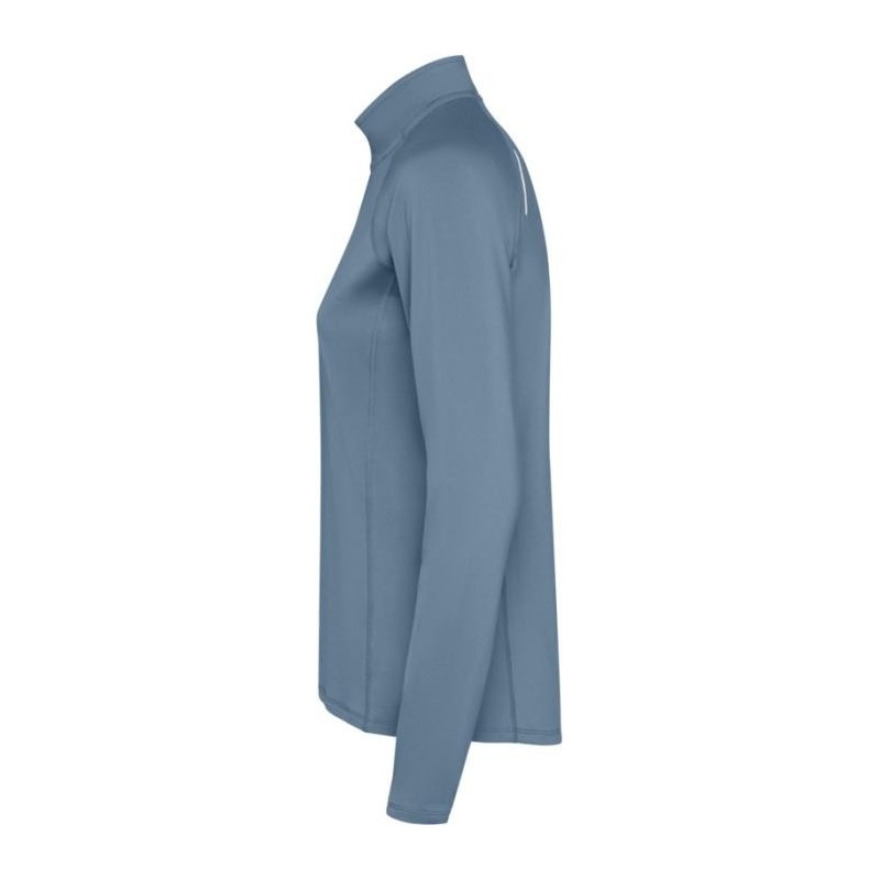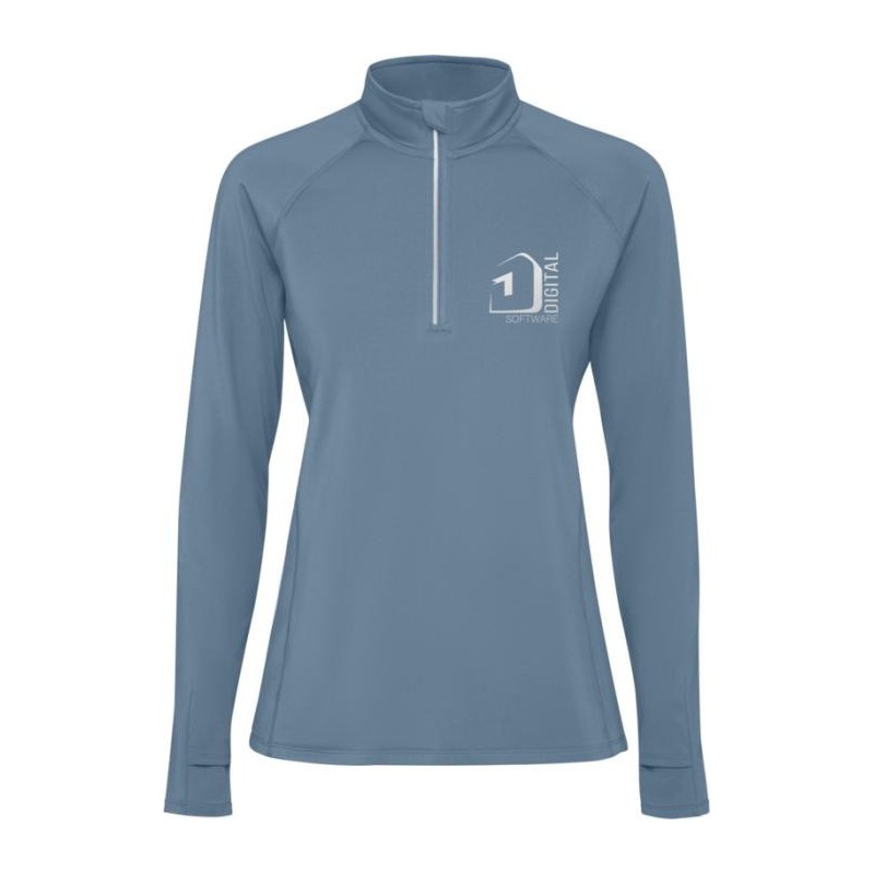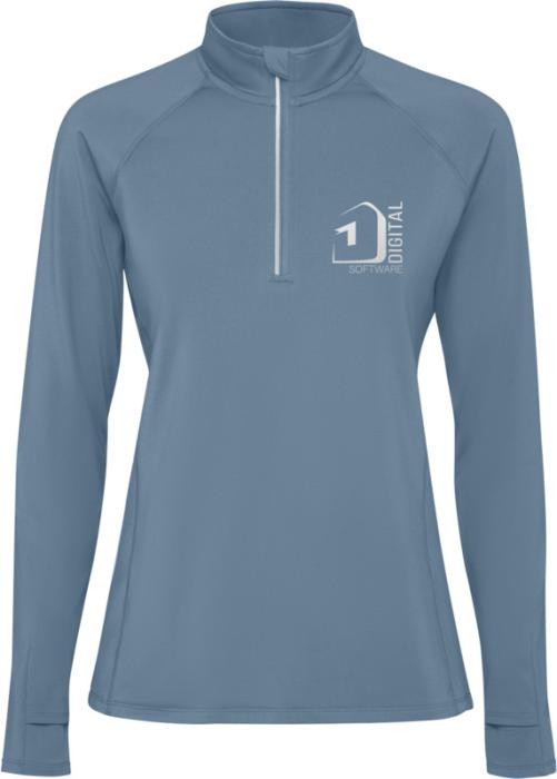 Sweatshirt technique raglan à manches longues pour femme. Coupe ajustée. Col avec demi-zip et détails réfléchissants. Surpiqûres renforcées. Poignets avec ouvertures pour le pouce. Détails réfléchissants au dos. L’ourlet du dos est légèrement plus long que celui du devant. Tissu intérieur chaud et brossé.