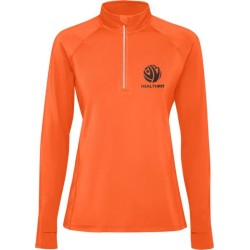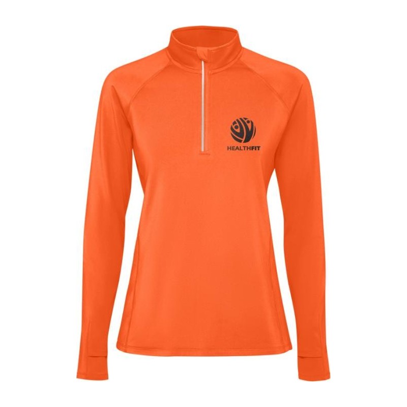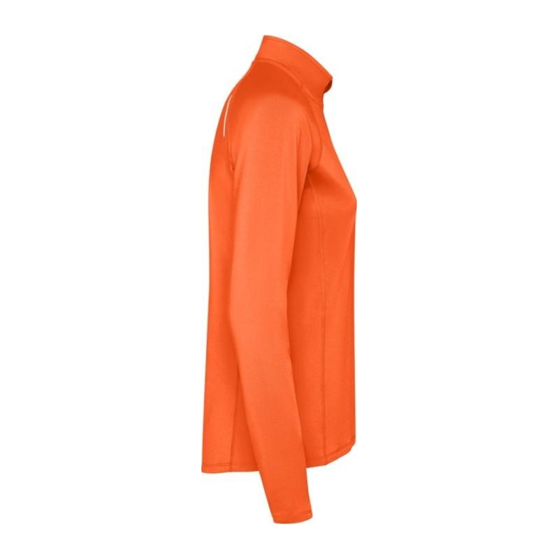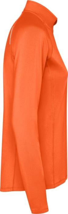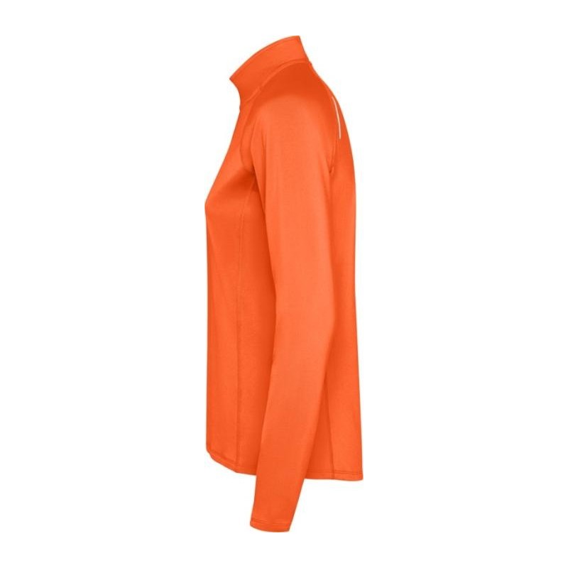 Sweatshirt technique raglan à manches longues pour femme. Coupe ajustée. Col avec demi-zip et détails réfléchissants. Surpiqûres renforcées. Poignets avec ouvertures pour le pouce. Détails réfléchissants au dos. L’ourlet du dos est légèrement plus long que celui du devant. Tissu intérieur chaud et brossé.