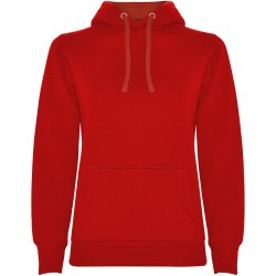 Sweat-shirt de coupe ajustée avec capuche bicolore en double tissu, cordon de serrage réglable contrasté, coutures recouvertes au col et poche kangourou. Côtes élasthanne 1x1 aux poignets et à la base. Détail fente pour le pouce. Étiquette détachable. Le mannequin mesure 179 cm et porte la taille S.