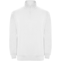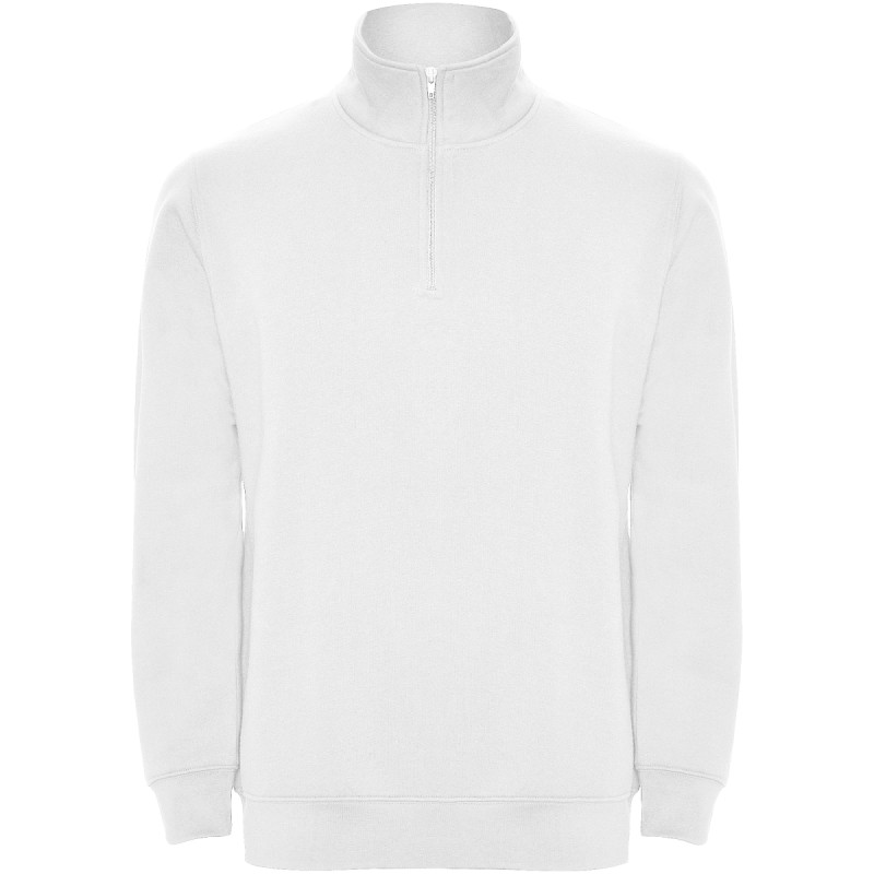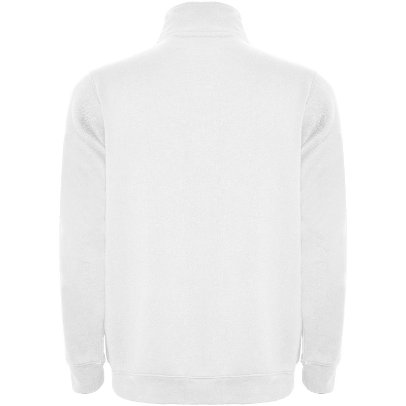 Sweat-shirt avec demi-fermeture zippée assortie et col polo. Col intérieur assorti. Coutures recouvertes renforcées à l'intérieur du col. Poignets et taille côtelés 1x1. Le mannequin mesure 185 cm et porte la taille M.