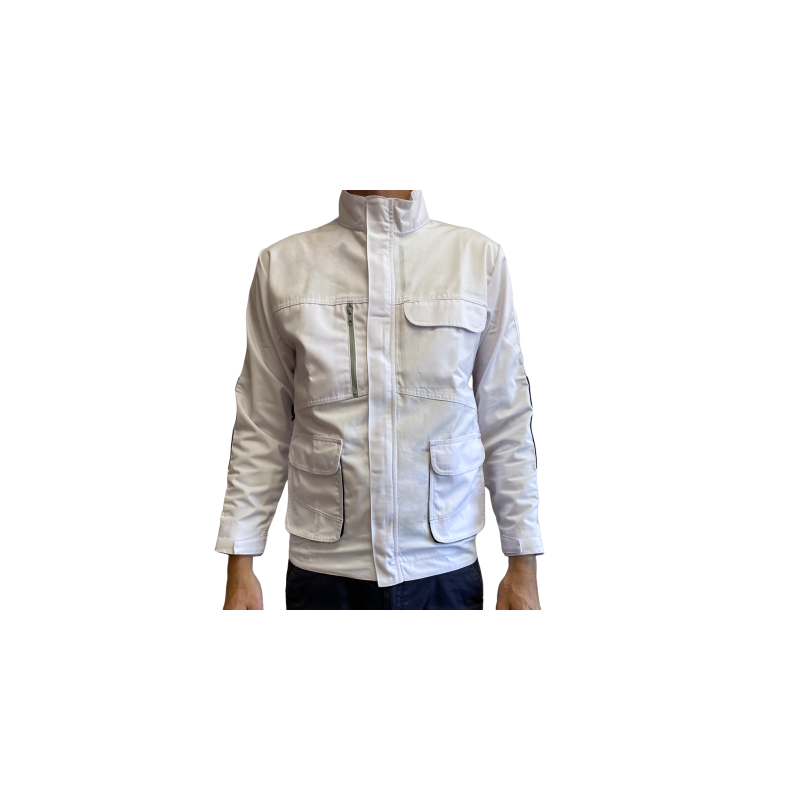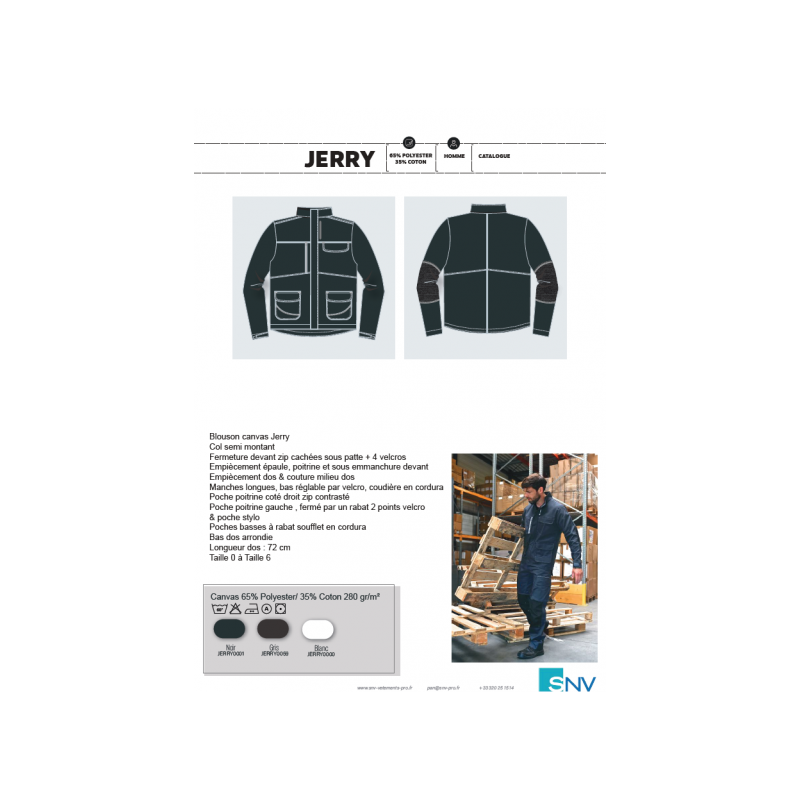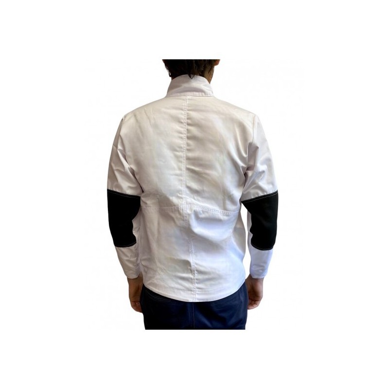 Zip caché sous patte, bas de manches réglables par velcro, coudières en cordura
