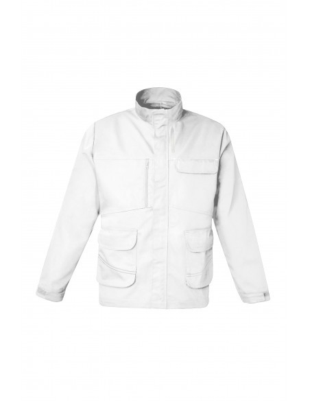 1 poche poitrine fermée par zip, 1 poche poitrine et poche stylo fermée par rabat et velcro, 2 poches basses à souffl et en cordura