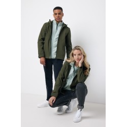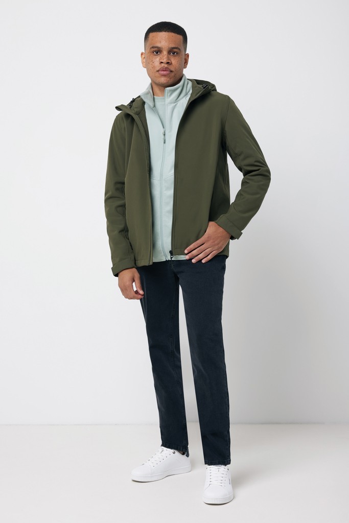 Veste soft shell coupe moyenne pour homme fabriquée en polyester recyclé avec un tissu à trois couches de 300 g/m², utilisant une membrane TPU recyclée et de la micro polaire douce à l'intérieur. La veste est équipée d'une fermeture à zip inversée sur le devant et de poches à zip dans les coutures des panneaux latéraux. Elle possède une capuche réglable. Les poignets des manches sont réglables par fermeture velcro. La veste est déperlante grâce au BIONIC-FINISH® ECO (tissu avec membrane TPU recyclée jusqu'à 5000 mm d'imperméabilité). Elle est coupe-vent et respirant jusqu'à 3000g/m2/24h. L'utilisation de matériaux recyclés authentiques et les déclarations d'impact environnemental sont garanties, grâce à l'utilisation du traceur AWARE™ et de la technologie blockchain. En scannant le code QR, vous aurez accès à un passeport numérique dédié. 2 % des recettes de chaque produit vendu seront reversés à Water.org. Ce produit est certifié OEKO-TEX® STANDARD 100.