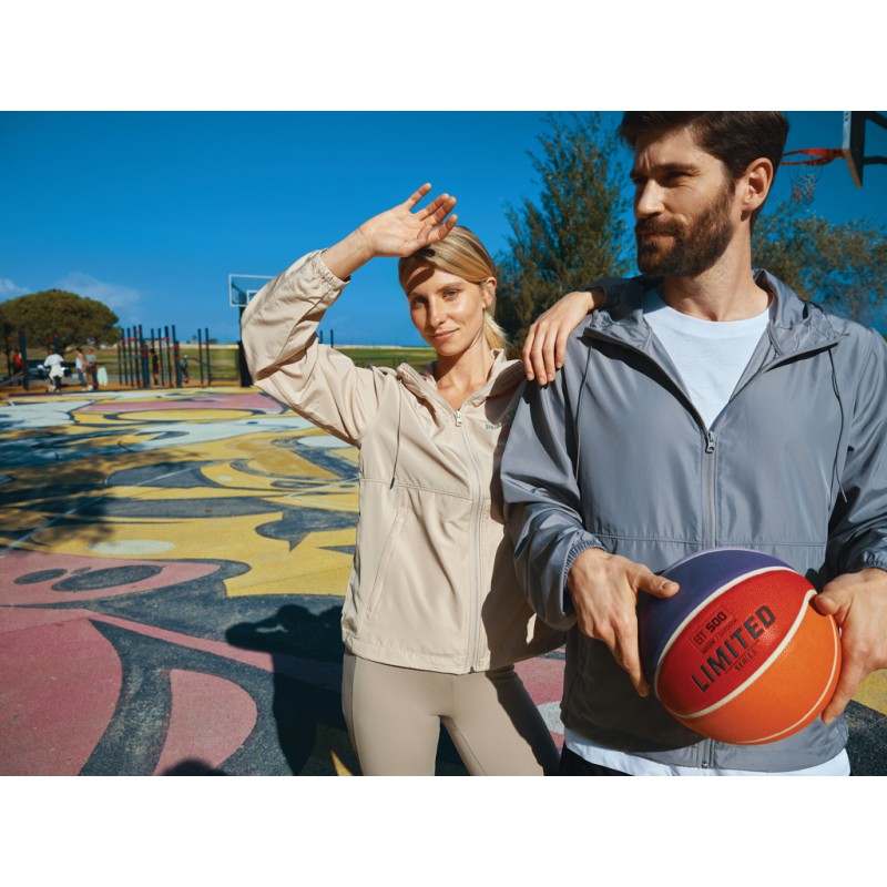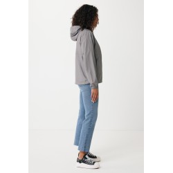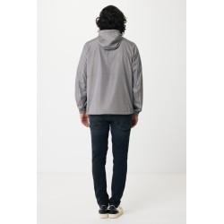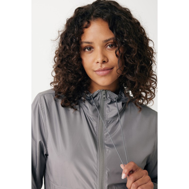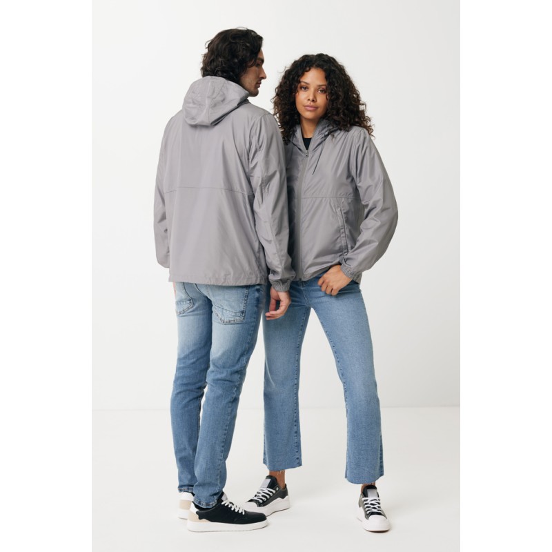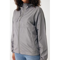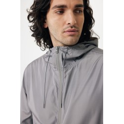 Veste légère coupe moyenne unisexe 100 % de polyester recyclé post-consommation en 70 G/M². La veste est dotée d'une capuche réglable avec cordon élastique, d'une fermeture à zip inversée sur le devant et de poches passepoilées. Toutes les fermetures à zip sont dotées de tirettes supplémentaires de couleur assortie pour un look raffiné. Les poignets sont entièrement élastiques. Le dos de la veste est légèrement plus long et incurvé et l'ourlet inférieur est doté d'un élastique et de bouchons pour une meilleure protection. Imprégnation déperlante sans fluor ni PFAS. L'utilisation de matériaux de tissus recyclés authentiques et les déclarations d'impact environnemental sont garanties, grâce à l'utilisation du traceur physique disruptif AWARE™ et de la technologie blockchain. En scannant le code QR, vous aurez accès à un passeport numérique dédié. 2 % des recettes de chaque produit vendu seront reversés à Water.org. Ce produit est certifié OEKO-TEX® STANDARD 100.