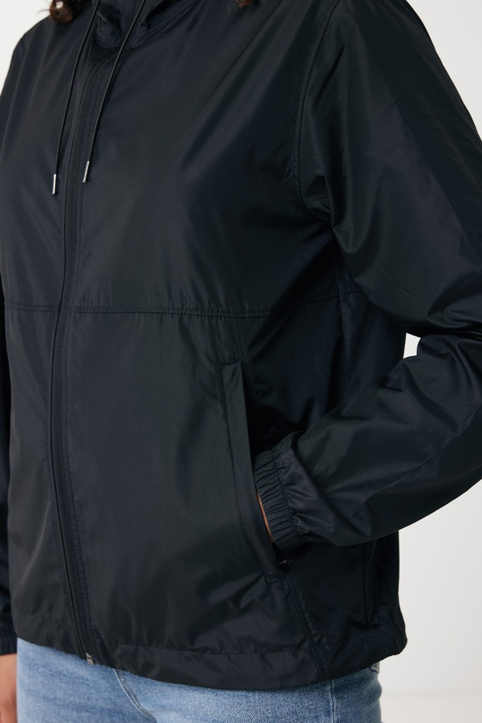 Veste légère coupe moyenne unisexe 100 % de polyester recyclé post-consommation en 70 G/M². La veste est dotée d'une capuche réglable avec cordon élastique, d'une fermeture à zip inversée sur le devant et de poches passepoilées. Toutes les fermetures à zip sont dotées de tirettes supplémentaires de couleur assortie pour un look raffiné. Les poignets sont entièrement élastiques. Le dos de la veste est légèrement plus long et incurvé et l'ourlet inférieur est doté d'un élastique et de bouchons pour une meilleure protection. Imprégnation déperlante sans fluor ni PFAS. L'utilisation de matériaux de tissus recyclés authentiques et les déclarations d'impact environnemental sont garanties, grâce à l'utilisation du traceur physique disruptif AWARE™ et de la technologie blockchain. En scannant le code QR, vous aurez accès à un passeport numérique dédié. 2 % des recettes de chaque produit vendu seront reversés à Water.org. Ce produit est certifié OEKO-TEX® STANDARD 100.
