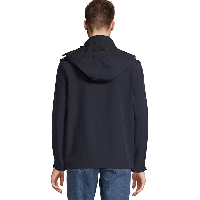 SOFTSHELL CAPUCHE ET MANCHES AMOVIBLESOuverture principale, poches côtés et poitrine avec zip nylon inversé ton sur ton