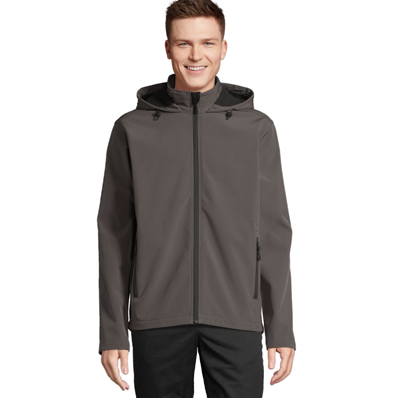 VESTE CAPUCHE SOFTSHELL HOMMEOuverture principale et poches latérales avec zip nylon noir