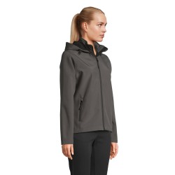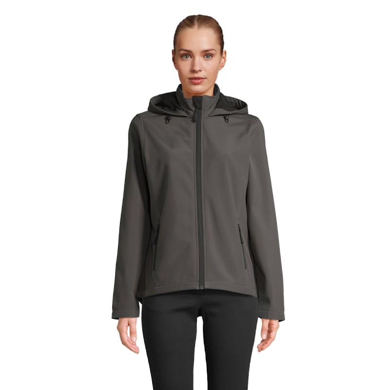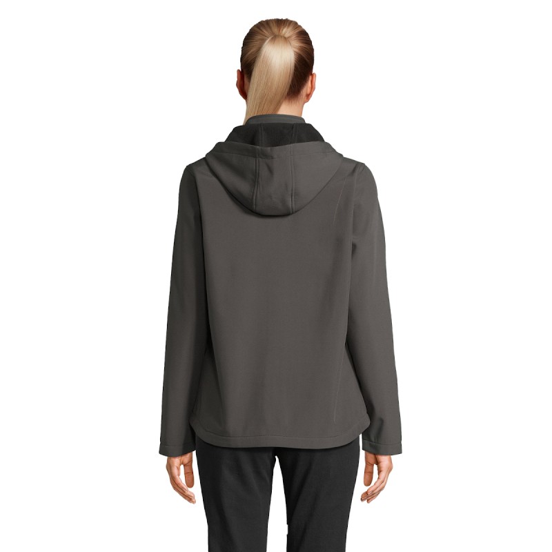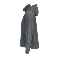 VESTE CAPUCHE SOFTSHELL FEMMEOuverture principale et poches latérales avec zip nylon noir