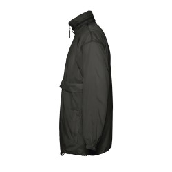 Il se différencie de la concurrence par deux poches zippées, zip au col pour la capuche, des œillets d'aération.