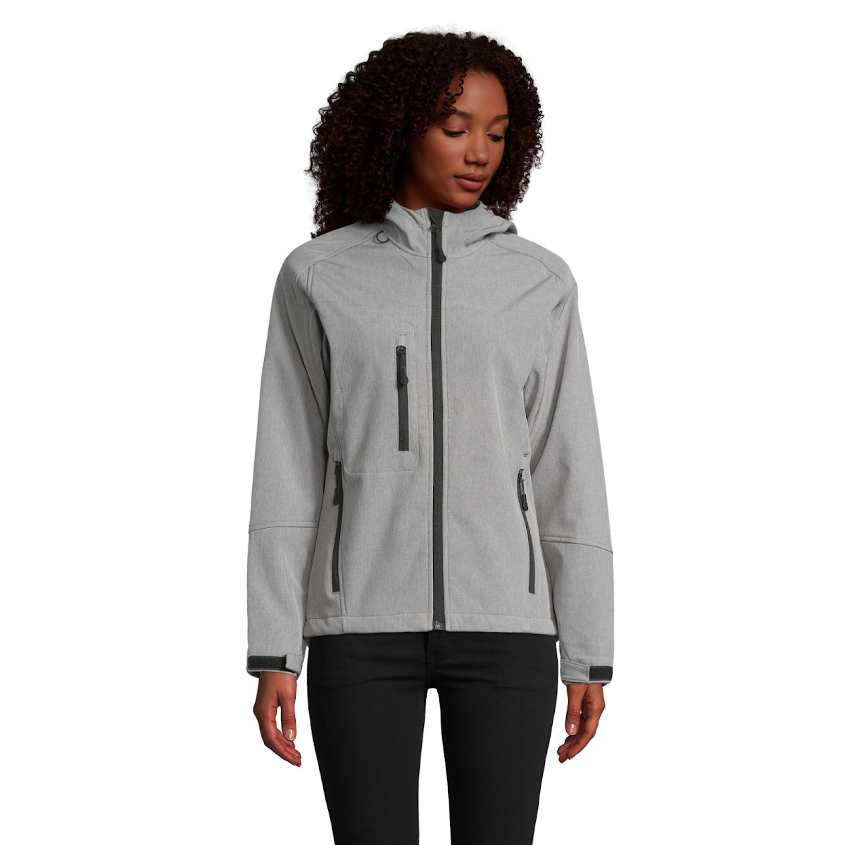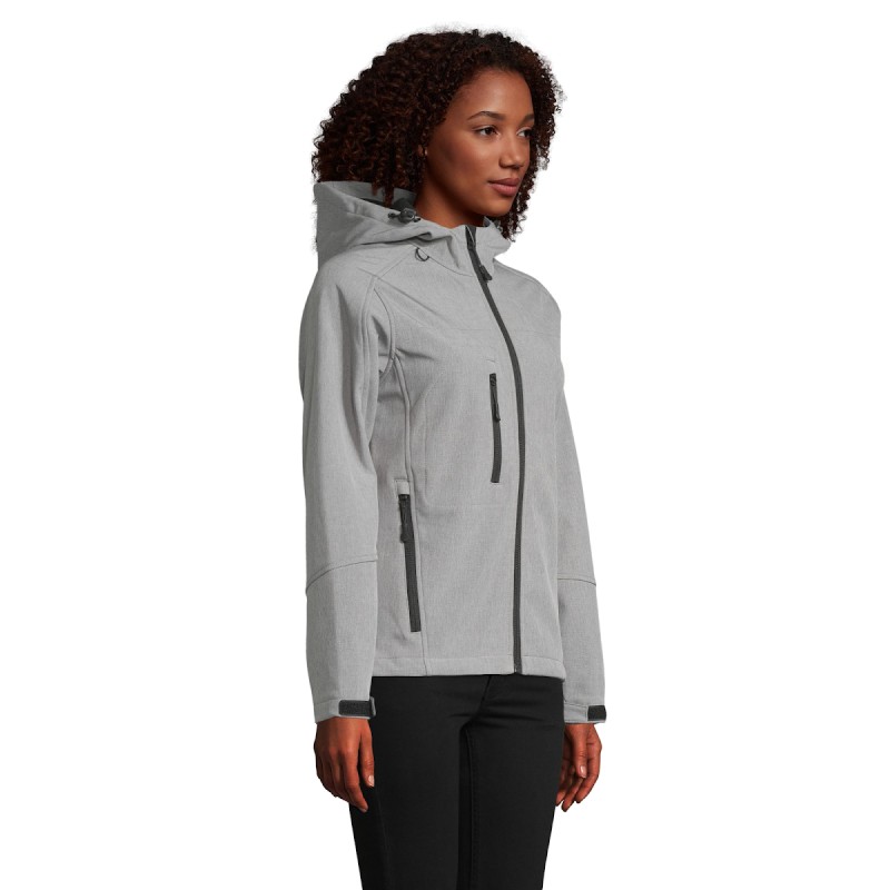 SOFTSHELL FEMME À CAPUCHE2 poches latérales et 1 poche poitrine zippées