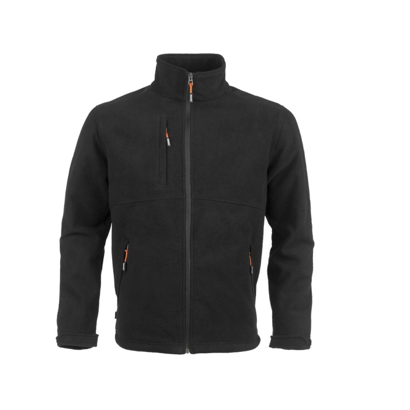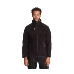 Blouson en polaire respirant, déperlant et coupe-vent. Respirant 2000 mvp. Imperméable 5000 mm. Épaules et coudes renforcés.