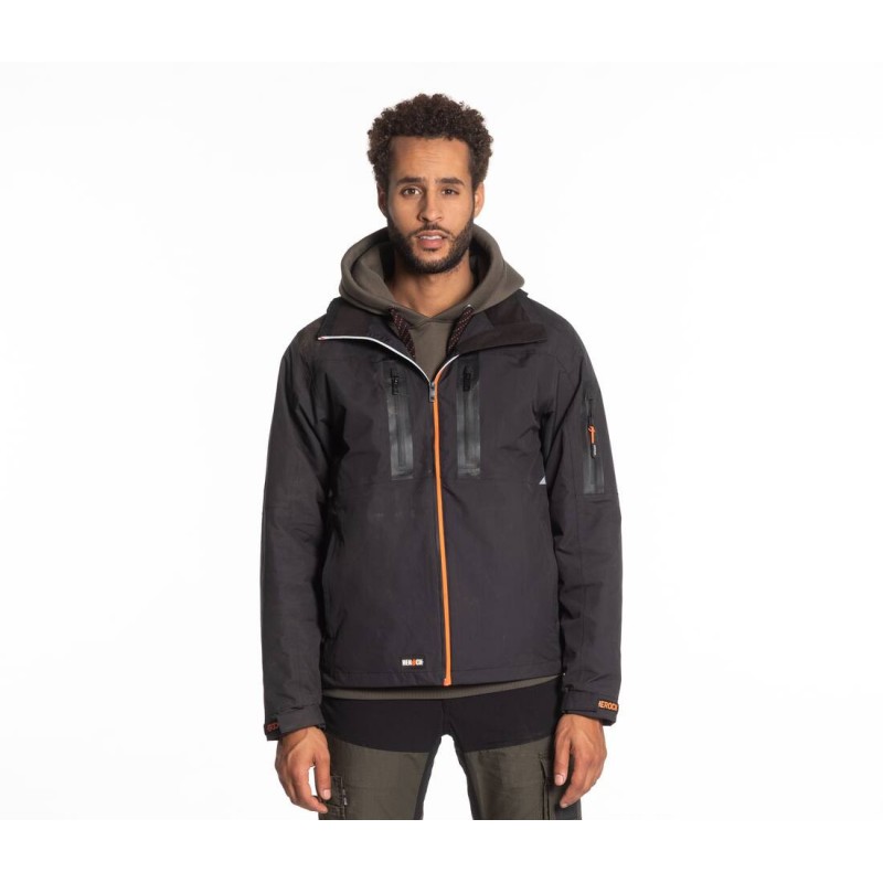 Veste technique imperméable, coupe-vent et respirant. Coutures recouvertes. Capuche ajustable et rangeable.