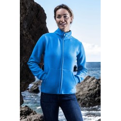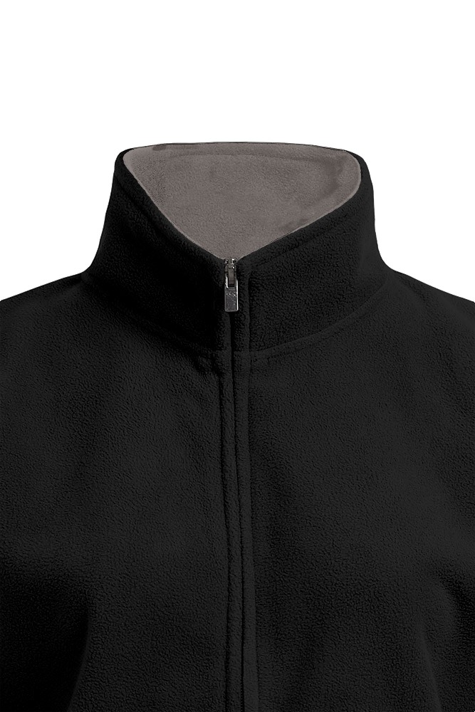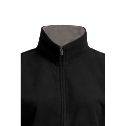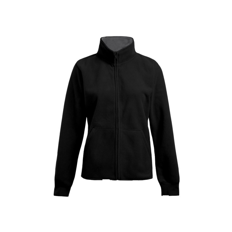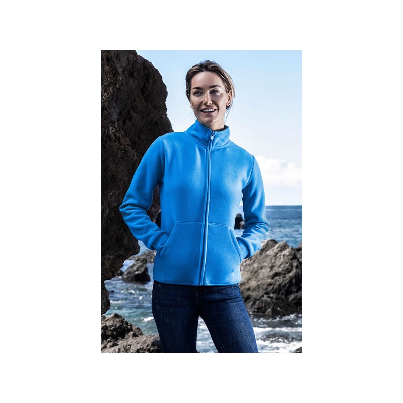 Veste double polaire femme, col montant, fermeture éclair sur toute la longueur et dissimulée, poche fendue avec surpiqûres décoratives, poignets en élasthanne, intérieur de couleur contrastée, finition anti-boulochage des deux côtés, polaire, 100 % polyester, 320 g/m², XS –XXXL. Unité = 1 pièce.