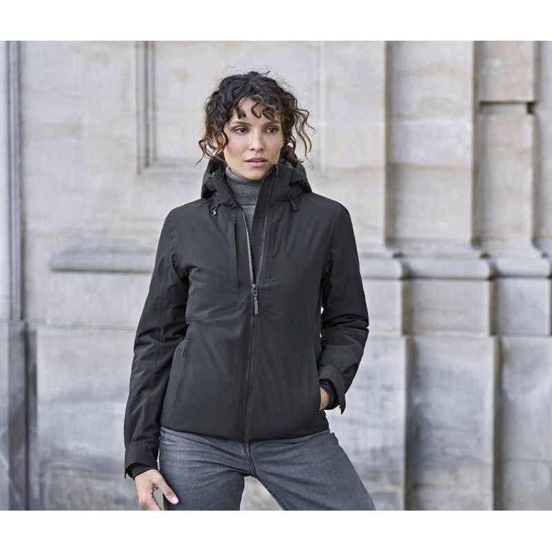 Matelassage DuPont™. Capuche amovible avec cordons ajustables. Coutures thermocollées. Taille ajustable avec cordons et stoppers.