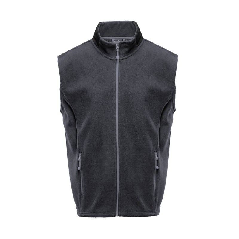 Fermeture zippée contrastée. Bande de propreté en chevron. Poches zippées avec tirette en plastique.