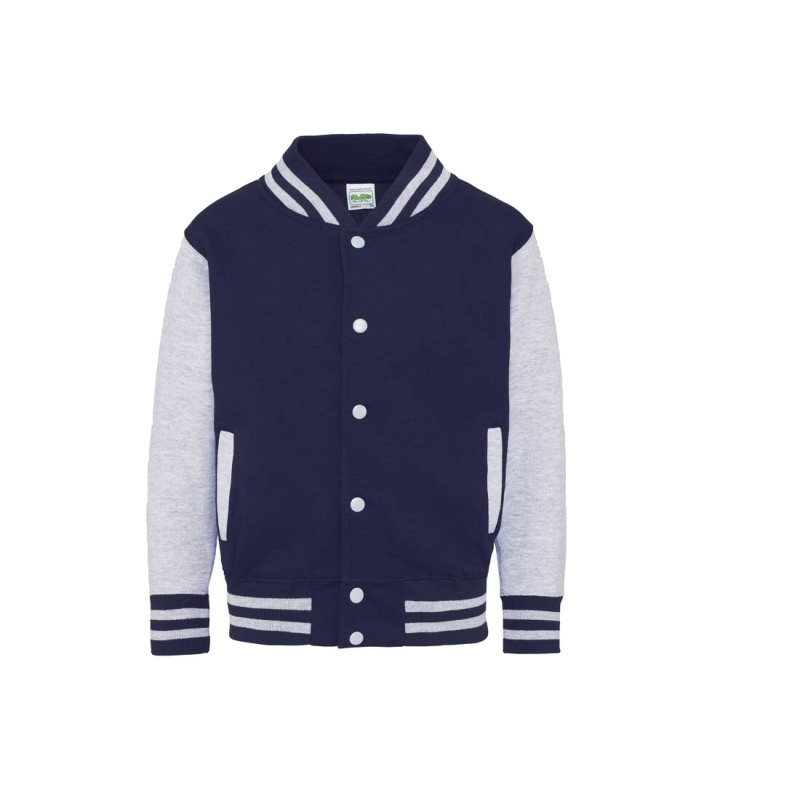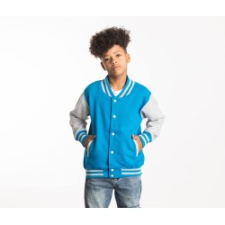 Manches contrastées. Col, poignets et taille en bords côte avec bandes contrastées. Fermeture par boutons pression.