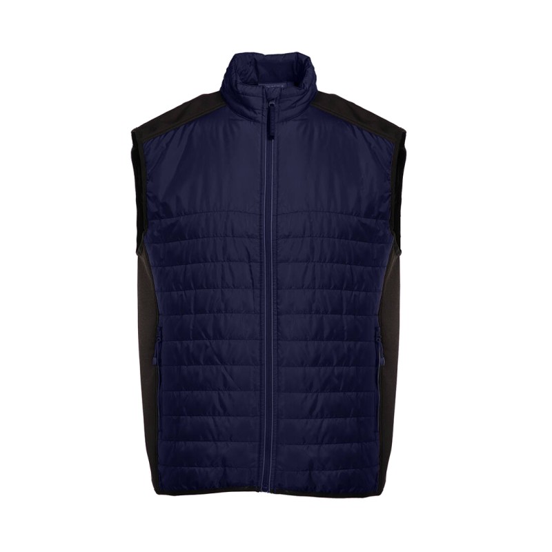 Bodywarmer bi-matière déperlant et coupe-vent. 2 poches latérales. Ourlet réfléchissant sur les zips.