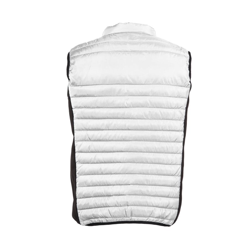 Bodywarmer léger moderne bi-matière. 2 poches latérales zippées. Zips contrastés.