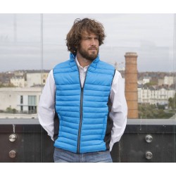Bodywarmer léger moderne bi-matière. 2 poches latérales zippées. Zips contrastés.