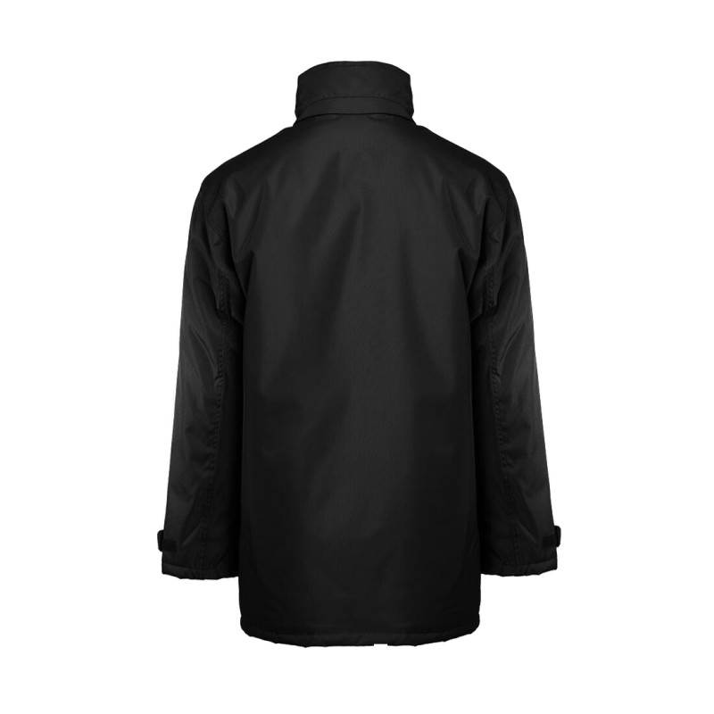 Coupe-vent avec enduction imperméable 1000mm. 2 poches extérieures zippées et 2 poches intérieures (portefeuille et GSM). Capuche dans le col.