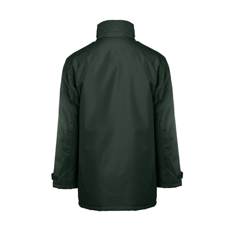 Coupe-vent avec enduction imperméable 1000mm. 2 poches extérieures zippées et 2 poches intérieures (portefeuille et GSM). Capuche dans le col.
