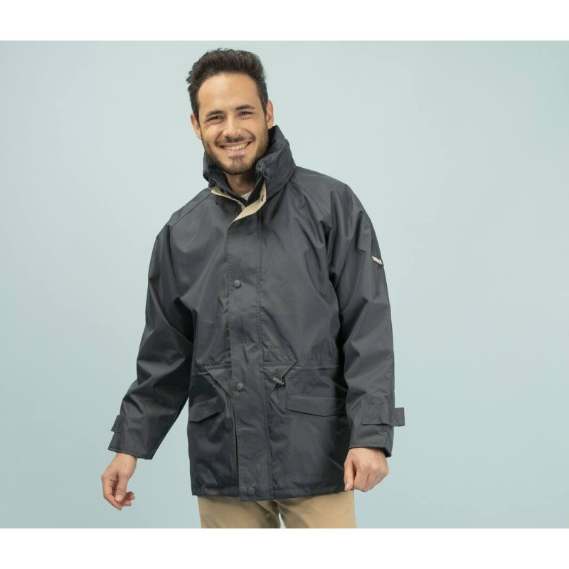 Coupe-vent et imperméable. Veste intérieure détachable : polaire anti-peluche 280 g/m². Capuche triple réglage dans le col.
