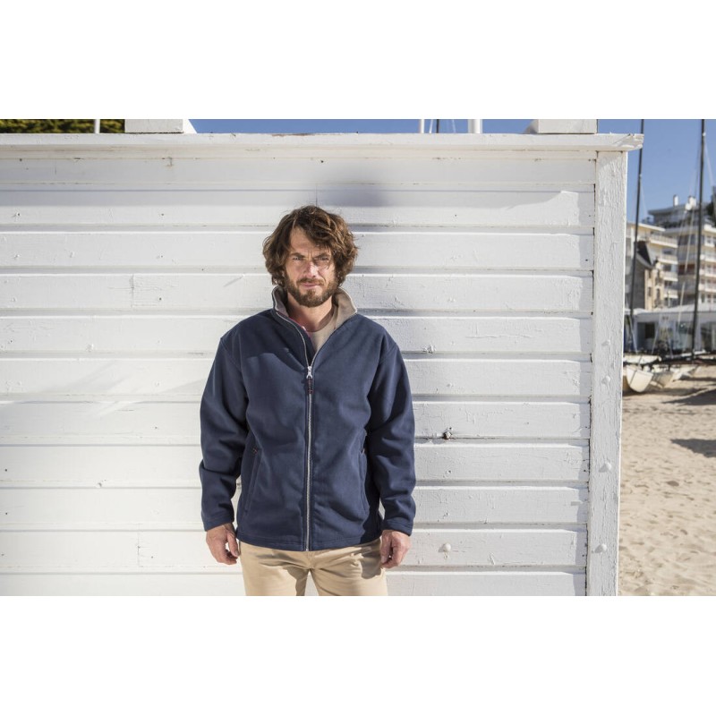 Polaire respirante et imperméable (avec membrane). 2 poches latérales zippées.