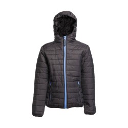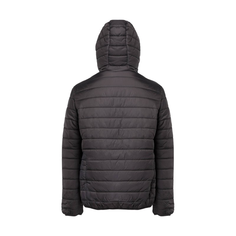 Doudoune avec capuche. Coupe-vent et déperlant. 2 poches latérales avec languette.