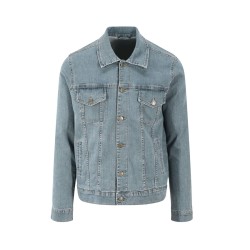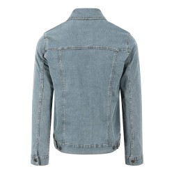 Coupe moderne. Jean stretch. Bouton de décoration aux poignets. Bride de suspension à l'intérieur du col.