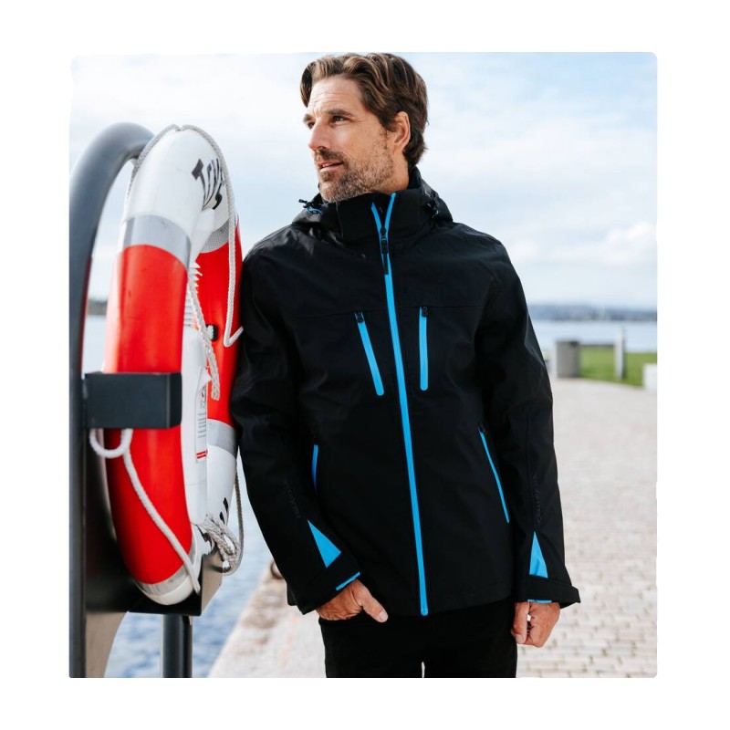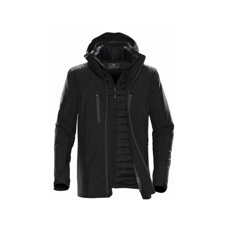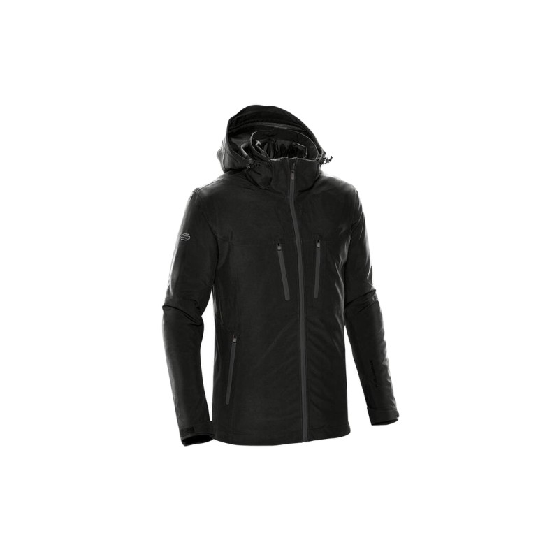 Coutures entièrement scellées. Coudes articulés. Zips étanches. Capuche détachable ajustable. Blouson intérieur matelassé amovible.