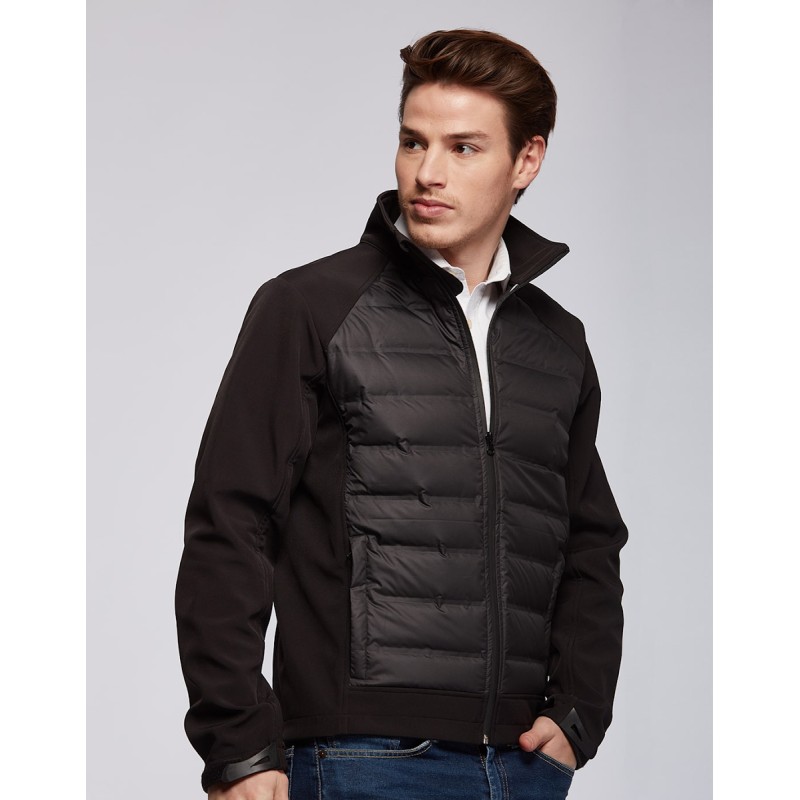 Blouson hybride pour sa combination softshell-doudoune. Le buste est constitué d’une doudoune en duvet véritable avec une construction soudée, imperméable et déperlante. Les manches, les épaules et le dos sont composés d’une matière softshell 3 couches avec membrane qui rend le produit imperméable et déperlant. La doudoune donne le confort et la chaleur quand la softshell confère tenue et allure. 2 poches zippées pour les mains. Revêtement en polyester 50D. Disponible sur stock et livré sous 24/48h sans personnalisation, coloris disponibles : Gris dans les tailles 2XL