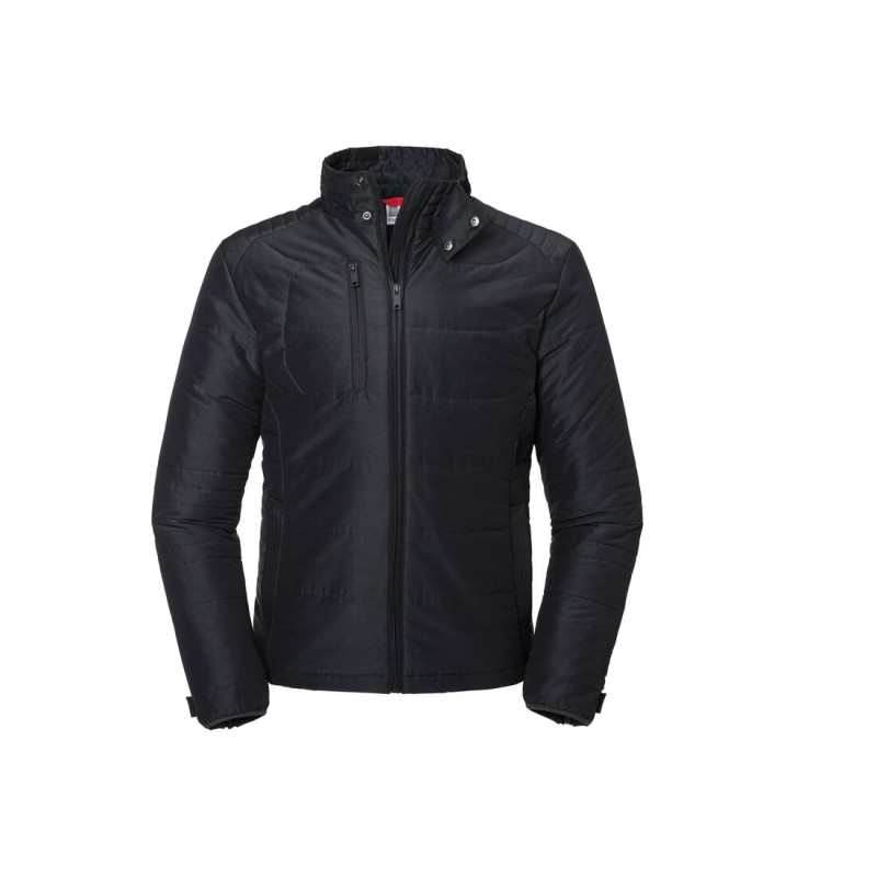 Coupe ajustée moderne. Tissu DWR haute performance traité avec Aquapel by Nanotex®. Zips inversés sur le devant, la poche poitrine, les poches latérales et les manches. Accès personnalisation.