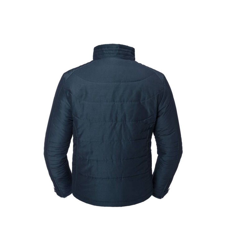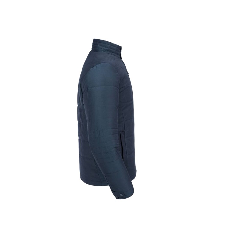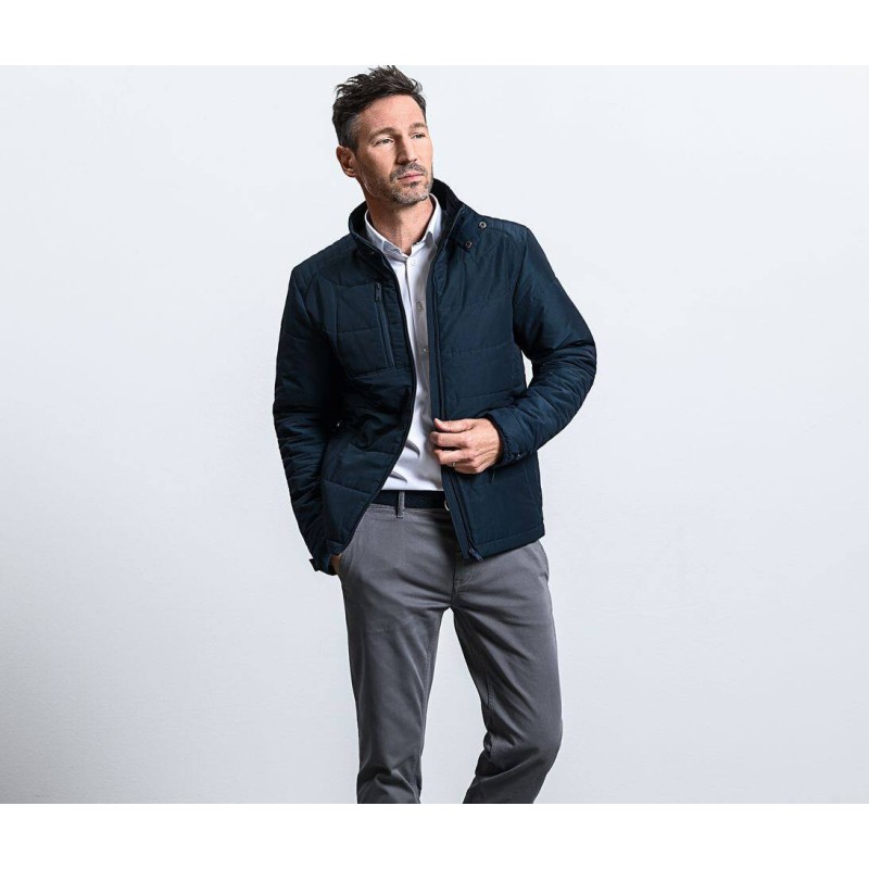 Coupe ajustée moderne. Tissu DWR haute performance traité avec Aquapel by Nanotex®. Zips inversés sur le devant, la poche poitrine, les poches latérales et les manches. Accès personnalisation.