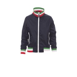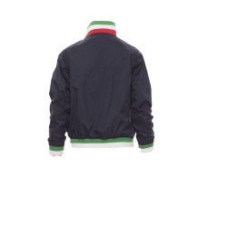 Blouson femme, coupe ergonomique, fermé par zip blanc en plastique avec curseur avec curseur en métal . Col, poignets et taille en bord-côte couleurs drapeau, deux poches extérieures. Intérieur : non rembourré, doublure en DryTech, une poche intérieure et zip pour faciliter impressions et broderies.