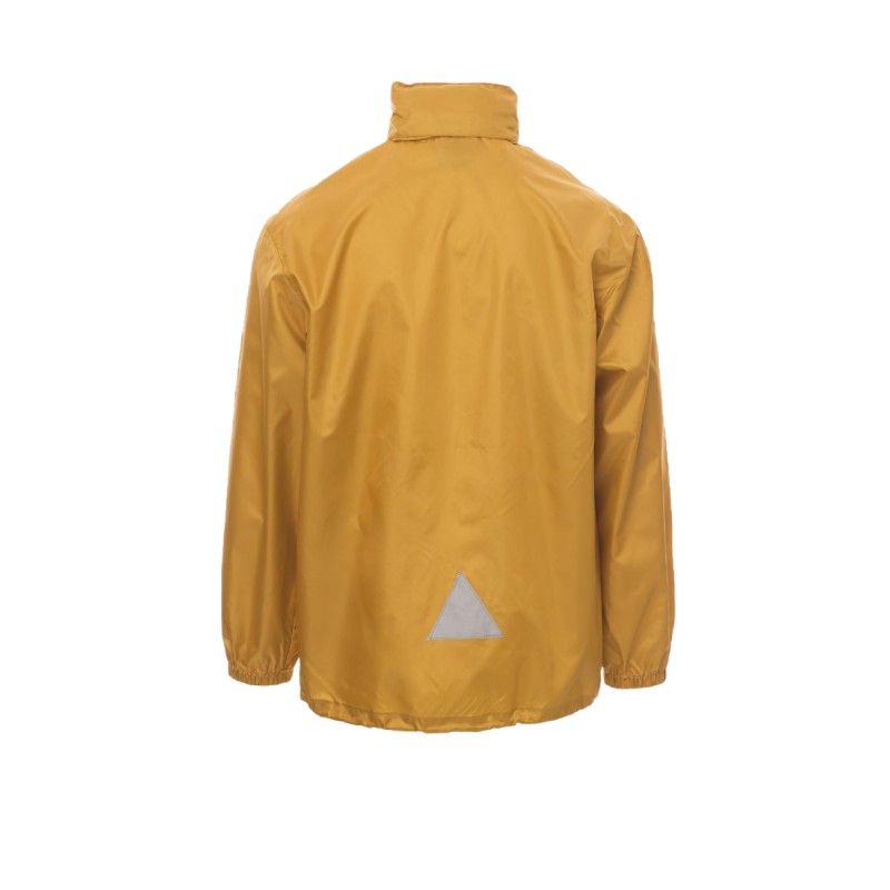 Veste imperméable unisexe, avec capuche escamotable, poignets avec élastique, deux poches à velcro, profils et insert réfléchissant au dos, intérieur : sans doublure, argenté (sauf couleur jaune). Conditionnée individuellement dans un sac refermable à coulisse et poignée latérale.Veste imperméable unisexe, avec capuche escamotable, poignets avec élastique, deux poches à fermeture éclair couvertes, profils et insert réfléchissant au dos, intérieur : sans doublure, argenté (sauf couleur jaune). Conditionnée individuellement dans un sac refermable à coulisse et poignée latérale.