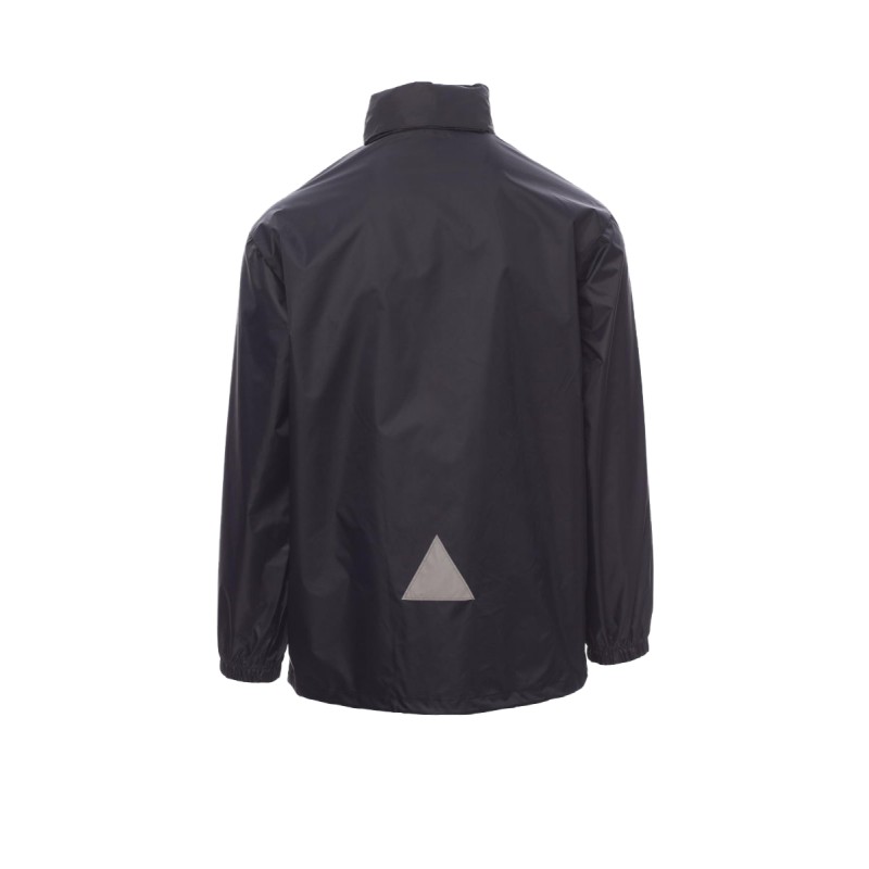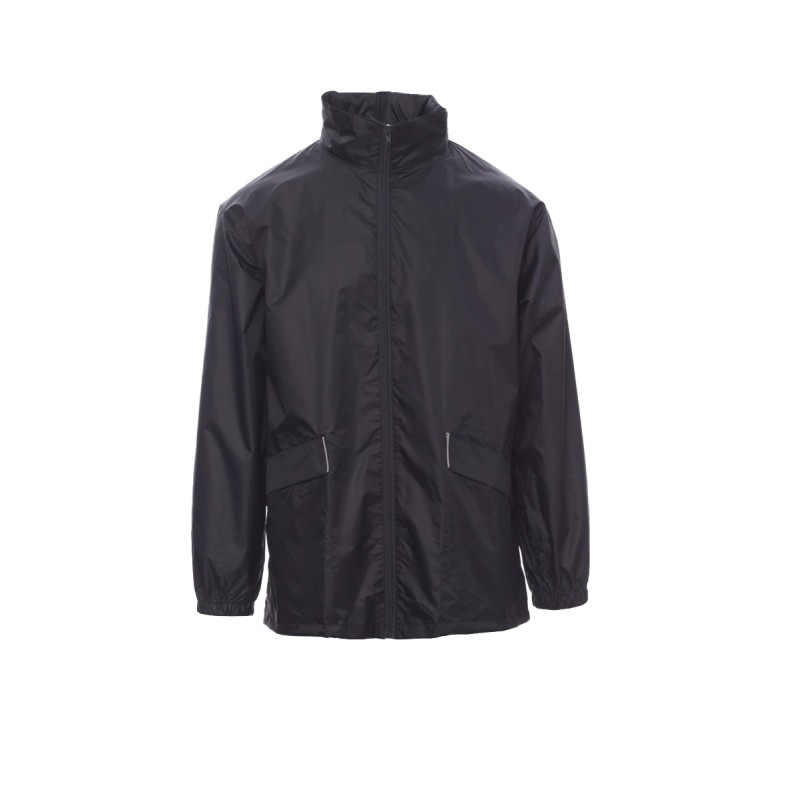 Veste imperméable unisexe, avec capuche escamotable, poignets avec élastique, deux poches à velcro, profils et insert réfléchissant au dos, intérieur : sans doublure, argenté (sauf couleur jaune). Conditionnée individuellement dans un sac refermable à coulisse et poignée latérale.Veste imperméable unisexe, avec capuche escamotable, poignets avec élastique, deux poches à fermeture éclair couvertes, profils et insert réfléchissant au dos, intérieur : sans doublure, argenté (sauf couleur jaune). Conditionnée individuellement dans un sac refermable à coulisse et poignée latérale.