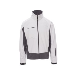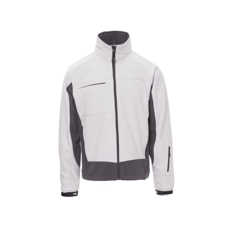 WP 8000 mm H₂O, WVT 5000 g/m² 24h. Veste homme, coupe ergonomique bicolore, fermeture éclair longue SBS avec ruban, capuche repliable dans le col, poignets réglables avec serre-poignet en velcro, deux poches latérales zippées, une poche de poitrine avec porte-badge invisible. Une poche Skipass sur la manche, coulisse à la taille.