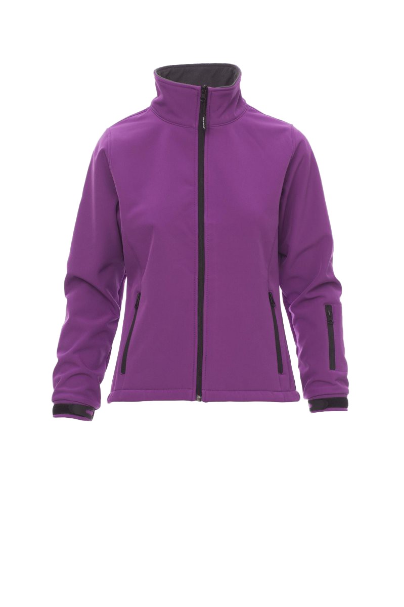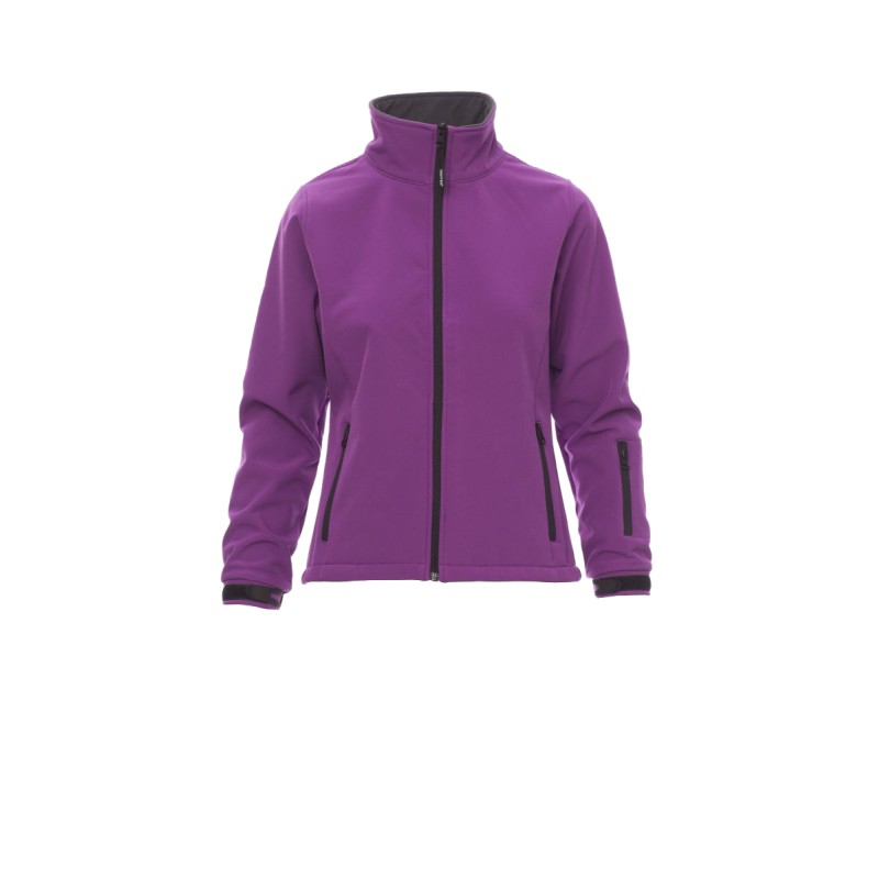 WP 8000 mm H₂O, WVT 5000 g/m² 24h. Veste femme, coupe ergonomique, fermeture éclair longue SBS avec ruban, poignets réglables avec serre-poignet caoutchouc et velcro, deux poches latérales à fermeture éclair, une poche Skipass sur la manche.