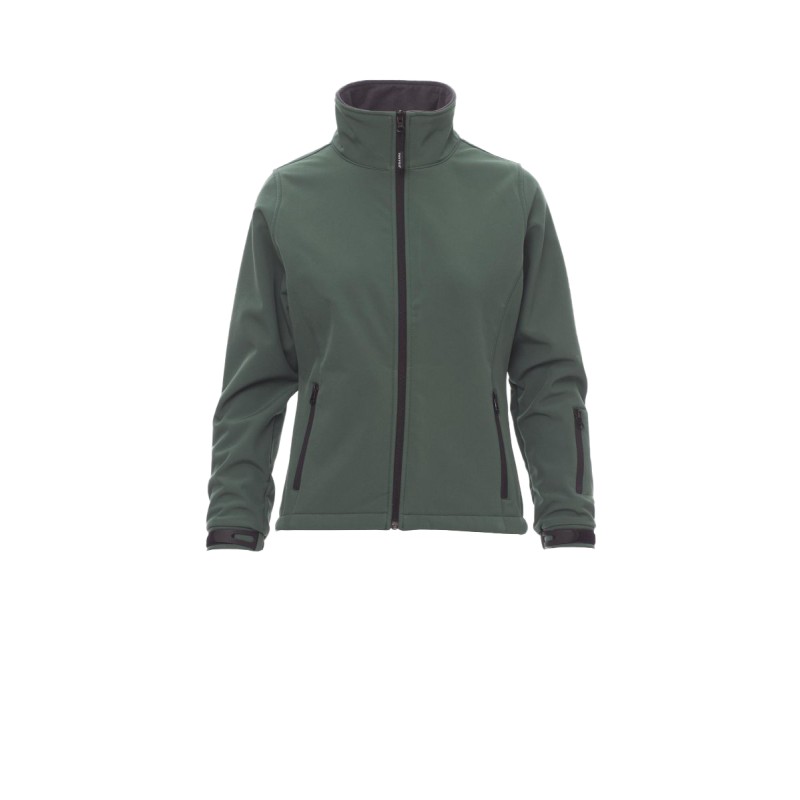 WP 8000 mm H₂O, WVT 5000 g/m² 24h. Veste femme, coupe ergonomique, fermeture éclair longue SBS avec ruban, poignets réglables avec serre-poignet caoutchouc et velcro, deux poches latérales à fermeture éclair, une poche Skipass sur la manche.