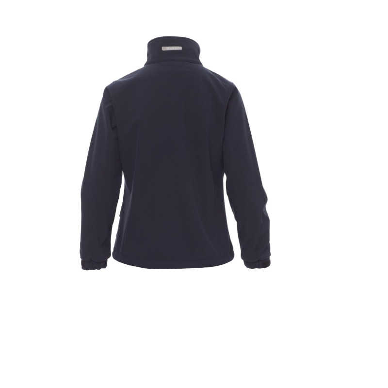 WP 8000 mm H₂O, WVT 5000 g/m² 24h. Veste femme, coupe ergonomique, fermeture éclair longue SBS avec ruban, poignets réglables avec serre-poignet caoutchouc et velcro, deux poches latérales à fermeture éclair, une poche Skipass sur la manche.