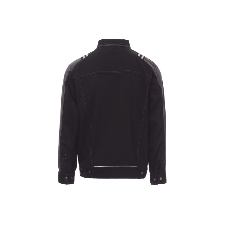Veste non rembourrée avec inserts et surpiqûres bicolores en contraste, coupe élancée façon jeans avec fermeture frontale par zip et rabat avec boutons, réglage aux poignets et à la taille avec boutons, deux poches kangourou sur le devant avec rabat LOCK SYSTEM et bouton en métal, deux poches sur la poitrine dont une LOCK SYSTEM, porte-badge détachable et refermable, porte-téléphone portable, passepoil réfléchissant sur le dos. Bandes réfléchissantes sur les épaules pour plus de sécurité et de visibilité. Intérieur non doublé.