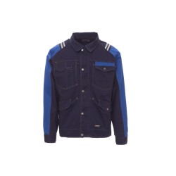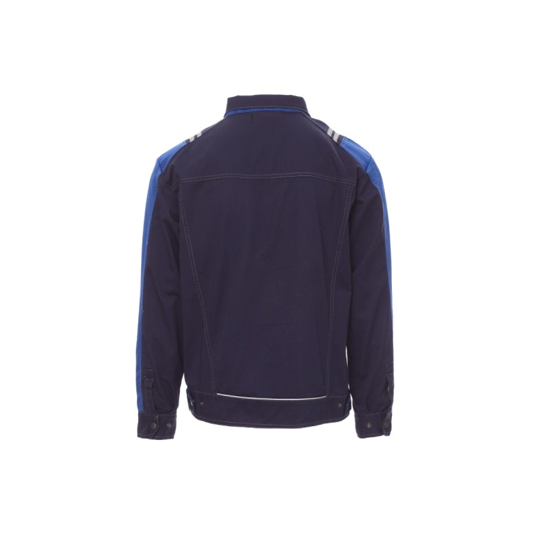 Veste non rembourrée avec inserts et surpiqûres bicolores en contraste, coupe élancée façon jeans avec fermeture frontale par zip et rabat avec boutons, réglage aux poignets et à la taille avec boutons, deux poches kangourou sur le devant avec rabat LOCK SYSTEM et bouton en métal, deux poches sur la poitrine dont une LOCK SYSTEM, porte-badge détachable et refermable, porte-téléphone portable, passepoil réfléchissant sur le dos. Bandes réfléchissantes sur les épaules pour plus de sécurité et de visibilité. Intérieur non doublé.